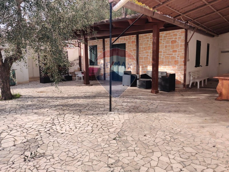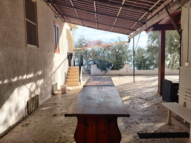La proprietà è circondata da una spaziosa area esterna pavimentata, ideale per godersi il panorama emozionante e la vista mare. Con 8.000 mq di terreno arricchito da secolari alberi di ulivo e pini, è unoasi di pace e bellezza naturale.