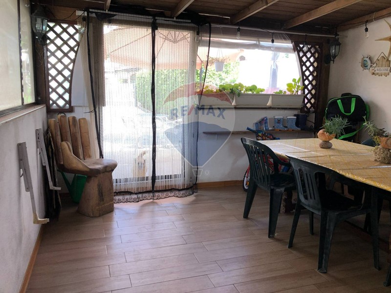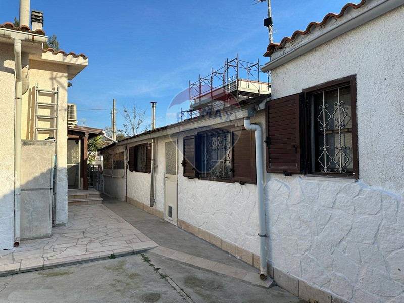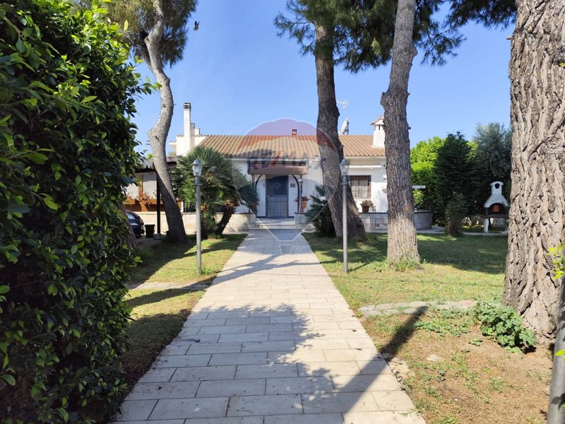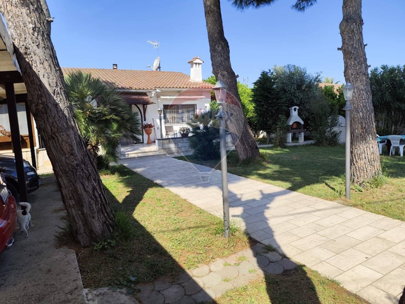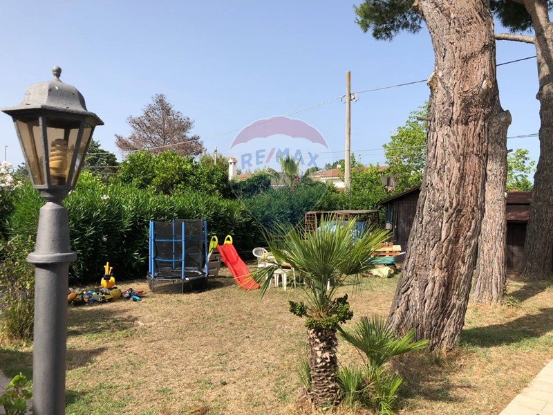 Splendida villa indipendente di 8 vani, completa di ampio giardino, doppio accesso (pedonale e carrabile) verande, dependance, deposito, posti auto coperti. Disposta su un univo livello, la villa è composta da ampia veranda, ingresso, zona living con termocamino, cucina abitabile, 3 camere da letto, 1 bagno. Un ampio giardino (con ingressi carrabile e pedonale) circonda l'intera abitazione: in parte a prato, in parte pavimentato, è piantumato con grandi pini marittimi e numerosi alberi da frutto. Completano la soluzione diversi accessori, quali un vano deposito, una pergola a copertura di 3 posti auto ed una dependance costituita da veranda, soggiorno, bagno e camera da letto. La villa è in buone condizioni generali, immediatamente abitabile. Le spese condominiali sono di c.a. 40,00 mensili. La proprietà è pervenuta per compravendita.