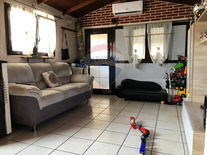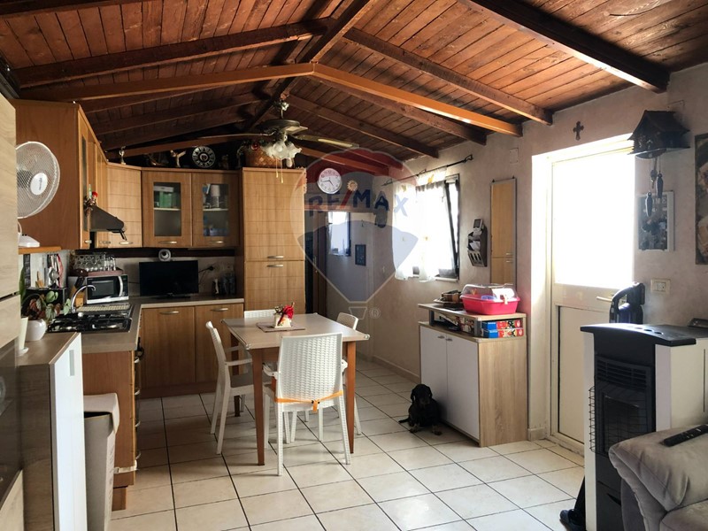 INTERNO: In buono stato manutentivo. L'altezza del solaio è di c.a. 2,70 mt, con vano mansardato che copre l'intera superficie dell'abitazione. Il riscaldamento è autonomo (dotato di serbatoio GPL), i diffusori sono in ghisa. La porta d'ingresso è blindata; gli infissi e le tapparelle in PVC. Le porte interne sono laminate di color legno. Il pavimento è in ceramica. L'immobile è completo di grate anti-intrusione ad ogni finestra.
