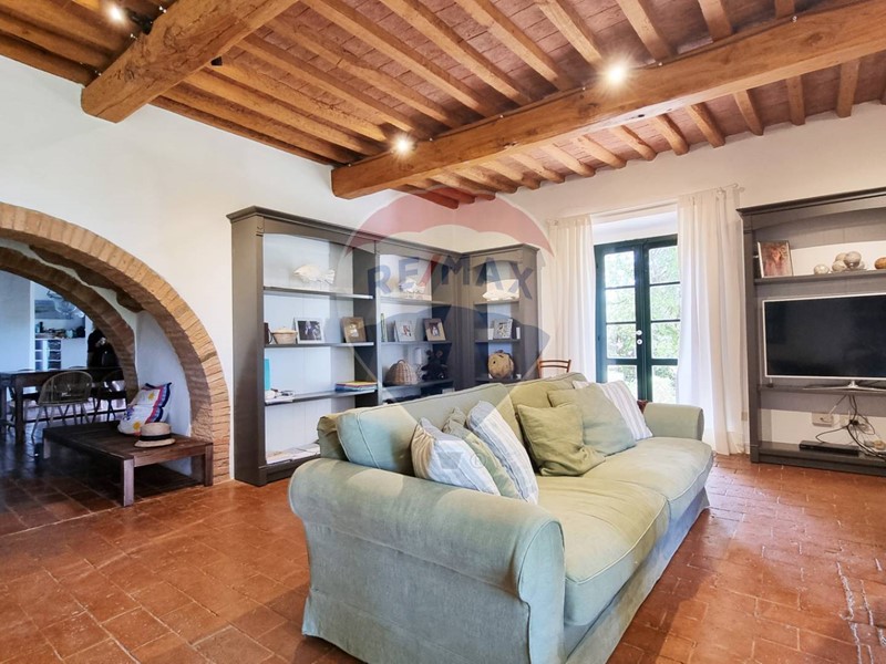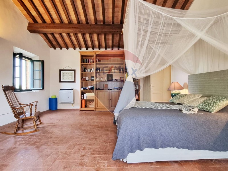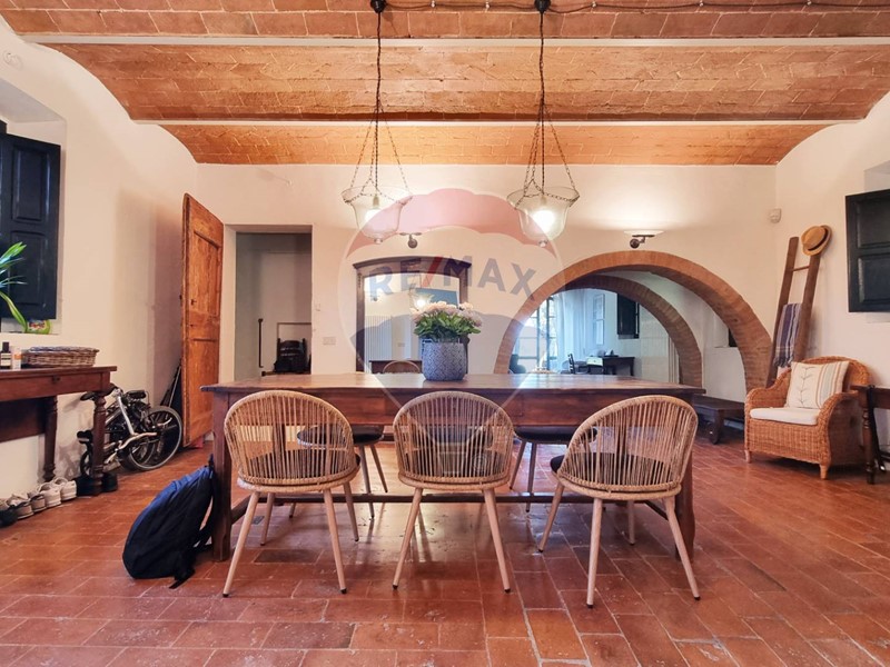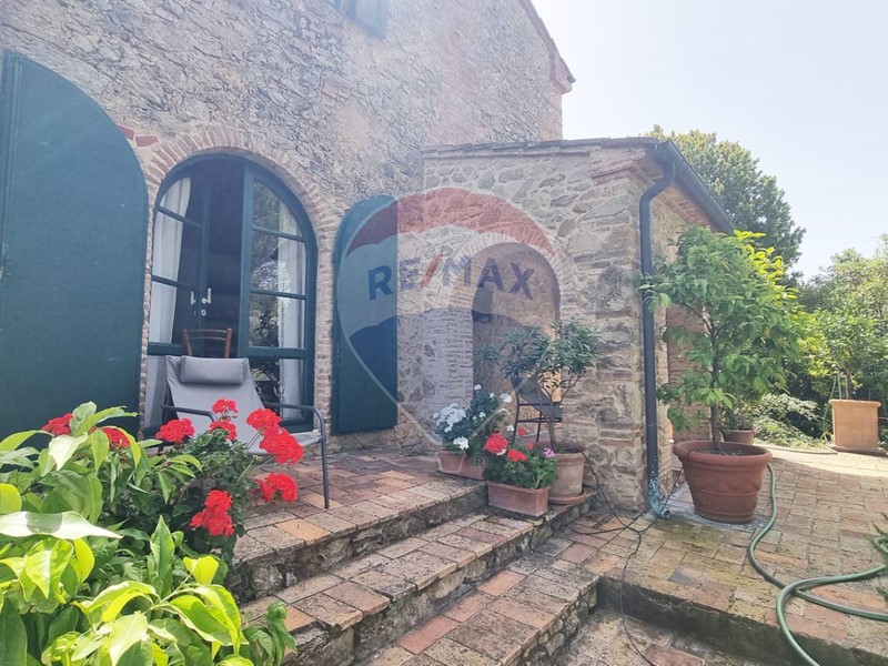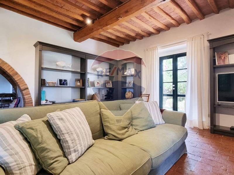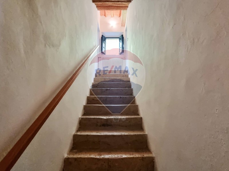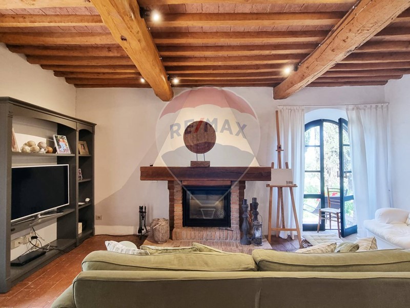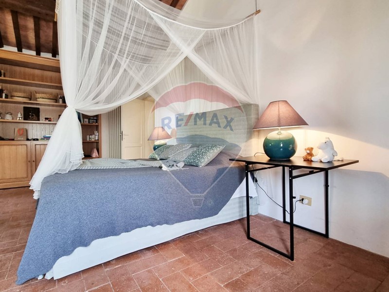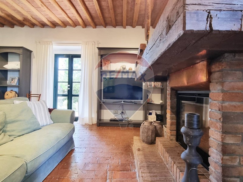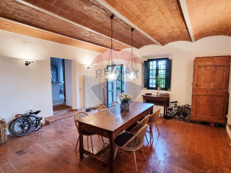 Questo storico casale in pietra è strutturato su 2 livelli, al piano terra un grande salone su 2 aree con doppio camino, ampia cucina ad isola con affaccio sul giardino, grande ripostiglio e bagno. Al primo piano con accesso da scale in pietra, ci sono 3 bellissime camere (di cui una con balconcino) ed il bagno. Tutto il casale è in classico stile toscano, con travi, travicelli e mezzane, il pavimento è in cotto e questi materiali creano un'accoglienza unica e calda.