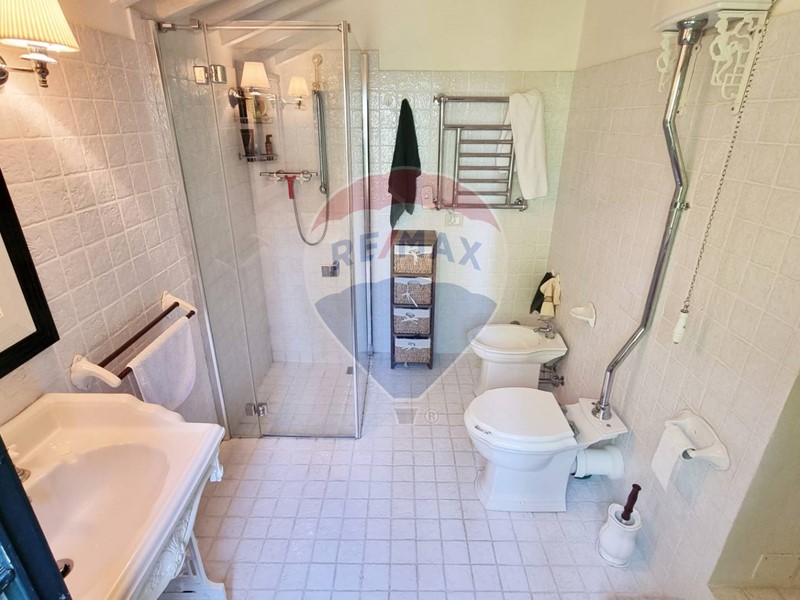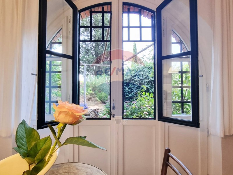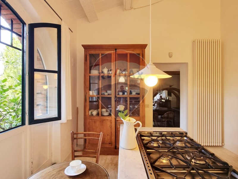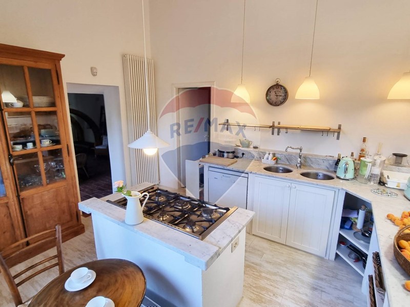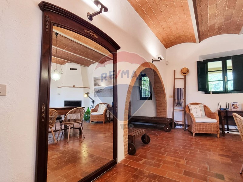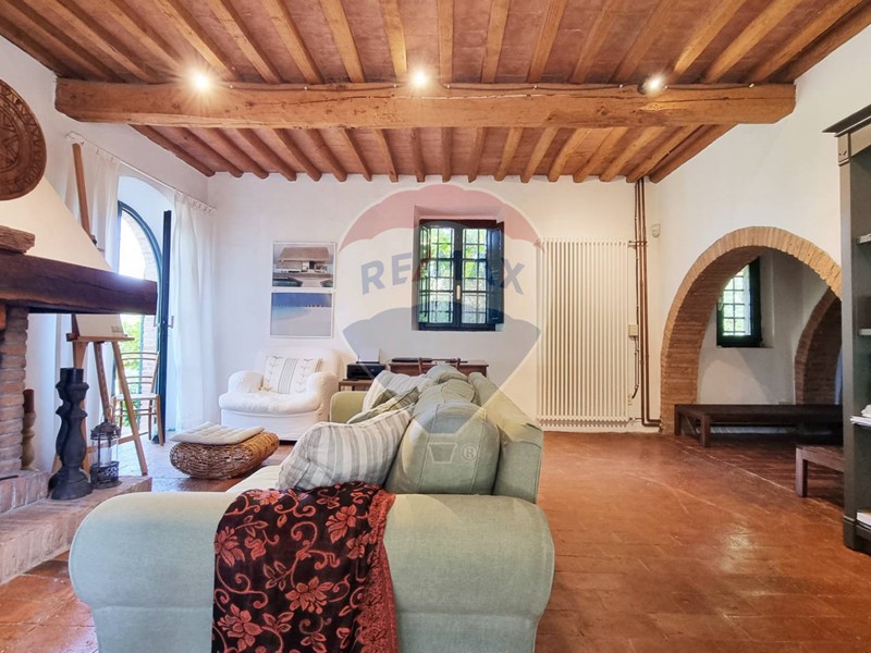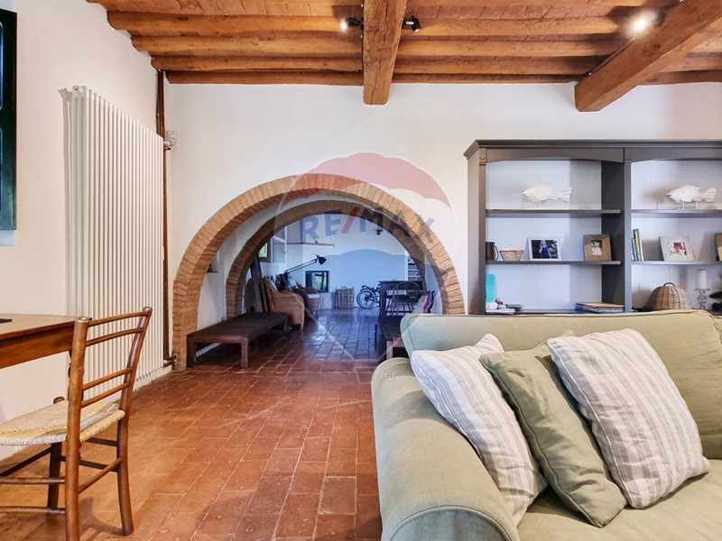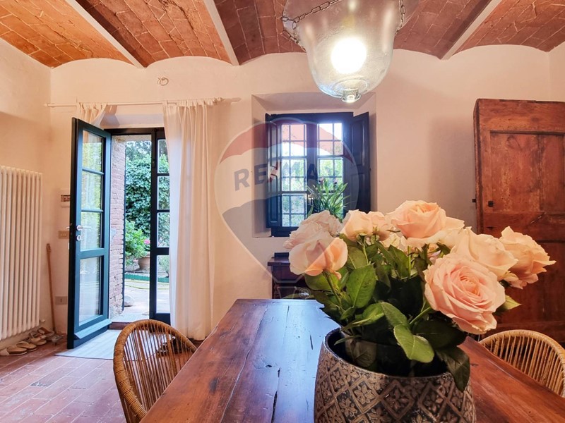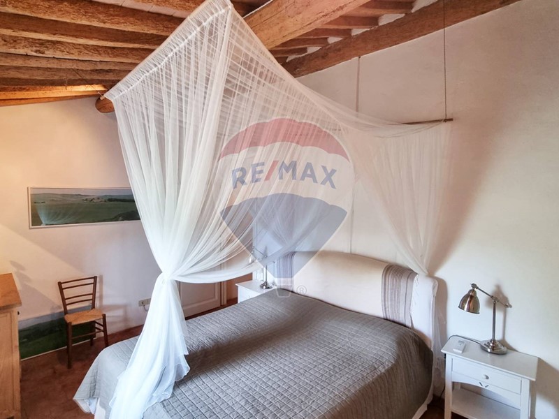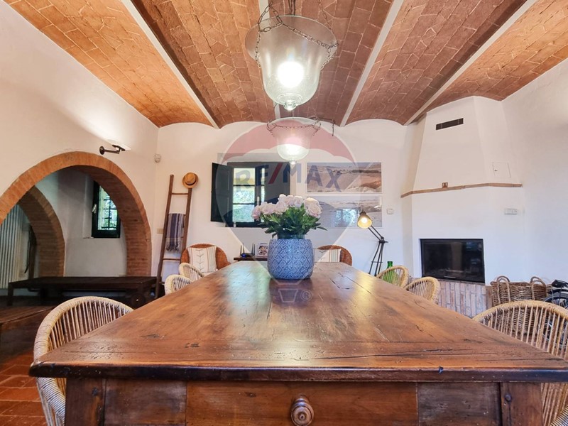 Questo storico casale in pietra è strutturato su 2 livelli, al piano terra un grande salone su 2 aree con doppio camino, ampia cucina ad isola con affaccio sul giardino, grande ripostiglio e bagno. Al primo piano con accesso da scale in pietra, ci sono 3 bellissime camere (di cui una con balconcino) ed il bagno. Tutto il casale è in classico stile toscano, con travi, travicelli e mezzane, il pavimento è in cotto e questi materiali creano un'accoglienza unica e calda.