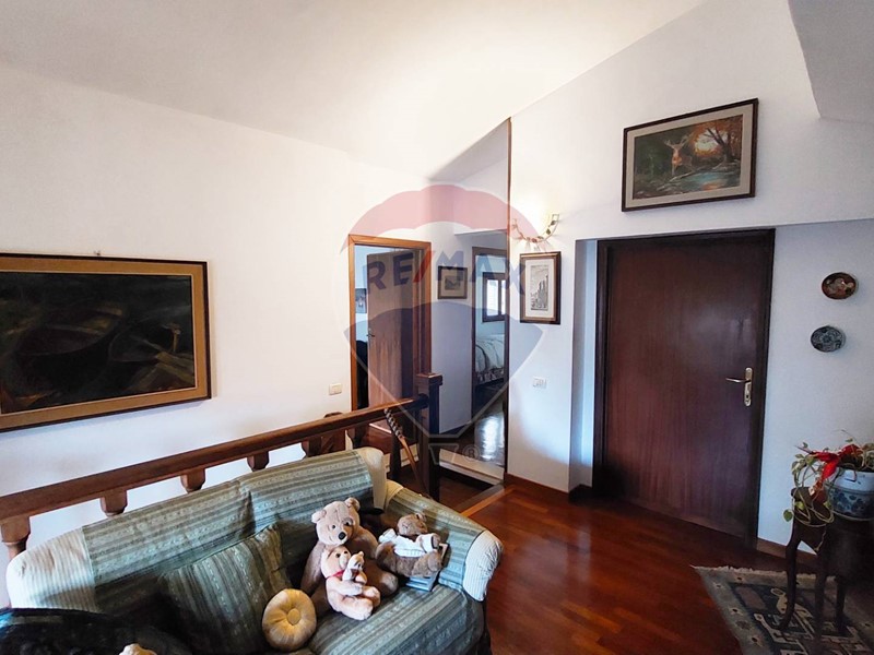 Troviamo accesso alla proprietà da cancello privato che ci conduce al parco che circonda il fabbricato , veniamo accolti in un ingresso attrezzato , troviamo poi la cucina pranzabile , il bagno ed il salone , dal quale , tramite comoda scala accediamo al piano superiore dove è ubicata la zona notte che si compone di una camere matrimoniale, due camerine ed un bagno oltre ad un grazioso ballatoio usufruibile come zona studio .