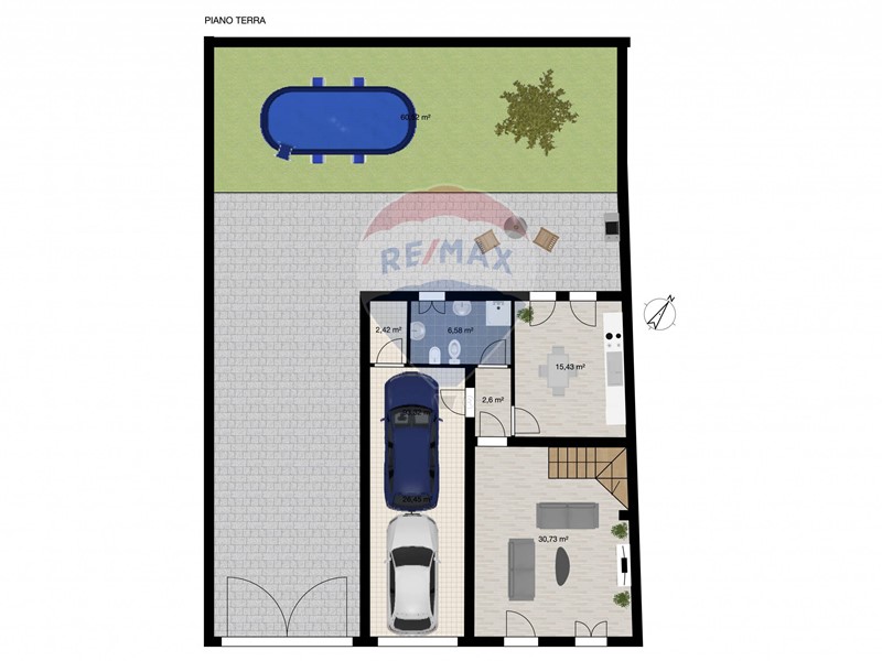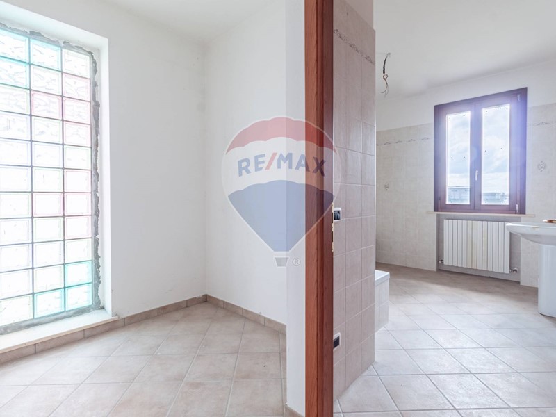 Un comodo atrio conduce al bagno-lavanderia con doccia e al garage doppio con ripostiglio, offrendo funzionalità e praticità.