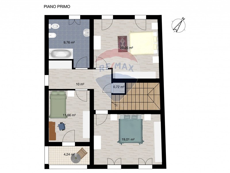 Al piano terra l'ingresso ci conduce in un luminoso e spazioso salotto arricchito da una scala in legno che porta al piano superiore. La cucina, di ampie dimensioni si affaccia direttamente sul cortile, creando un ambiente ideale per pranzi all'aperto e momenti di relax.