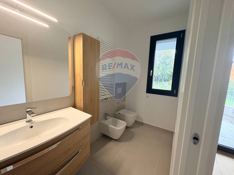 Costruito a fine del 2023 con tecnologie all'avanguardia (CLASSE ENERGETICA A4), lo stabile che ospita l'appartamento offre un'esperienza di vita moderna e confortevole. L'abitazione si sviluppa su una superficie totale di 81 mq commerciali interni e 16 mq esterni tra terrazzo e patio (coperto e abitabile fornito di acqua e presa elettrica). L'interno è composto da un'ampia zona giorno con cucina a vista (quella in foto è acquistabile a parte oppure verrà tolta), una spaziosa camera da letto con bagno completo finestrato (che rimane arredato come da foto incluso nel prezzo) e una comoda zona dove creare una cabina armadio. C'è un secondo bagno spazioso completo di tutti i sanitari e zona lavanderia.