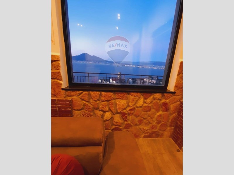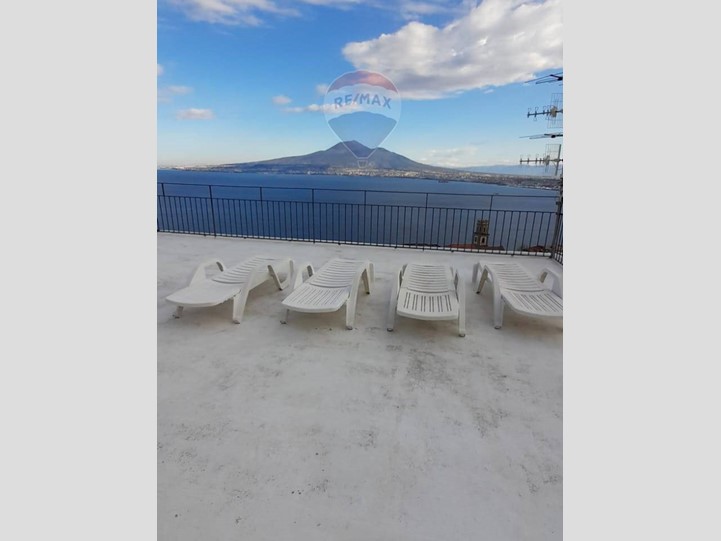 Secondo piano (75 mq): appartamento con cucina, due camere, bagno e terrazzi spettacolari da cui ammirare il Vesuvio e lazzurro del mare.