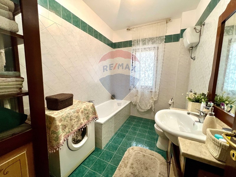 Con una superficie di circa 135 mq, si apre su un raffinato salone e un comodo soggiorno con accesso diretto a un giardino pavimentato di circa 80 mq, perfetto per chi ama vivere gli spazi esterni con stile e riservatezza. A rendere il tutto ancora più pratico, è presente un ripostiglio esterno ben organizzato.