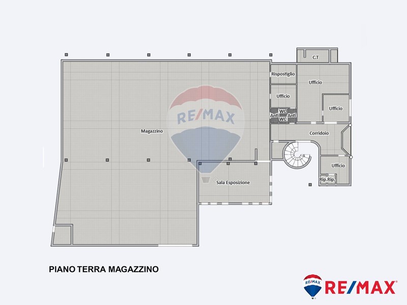 - Uffici di 120 mq con doppio servizi: Ideali per amministrazione, accoglienza clienti o coworking.