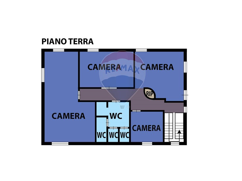 - il piano terra è attualmente suddiviso in ingresso, 2 stanze, unampia sala riunioni, 3 wc,