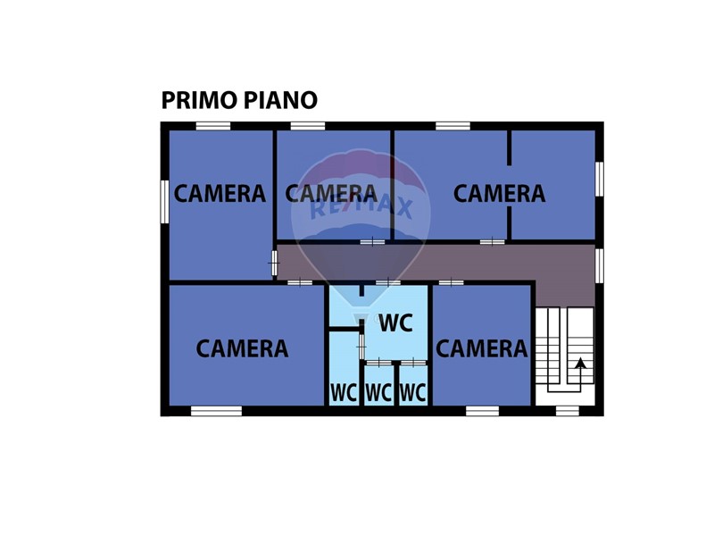 - il 1° piano è attualmente composto da 6 stanze, 3 wc e piccolo angolo snack