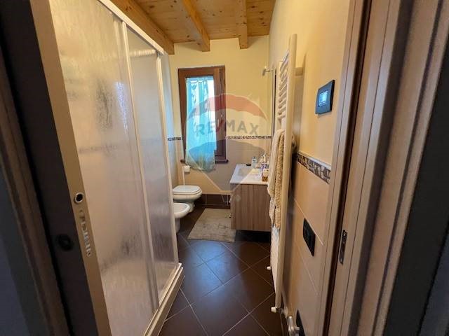 Tutti i bagni sono arredati con sanitari di design e dotati di box doccia. L'ultimo piano, sottotetto, è un'ampia e luminosa mansarda con travi a vista, ideale come studio o zona relax, attualmente allo stato rustico, ma già predisposta per altre due camere da letto e bagno, oltre a zona soggiorno.