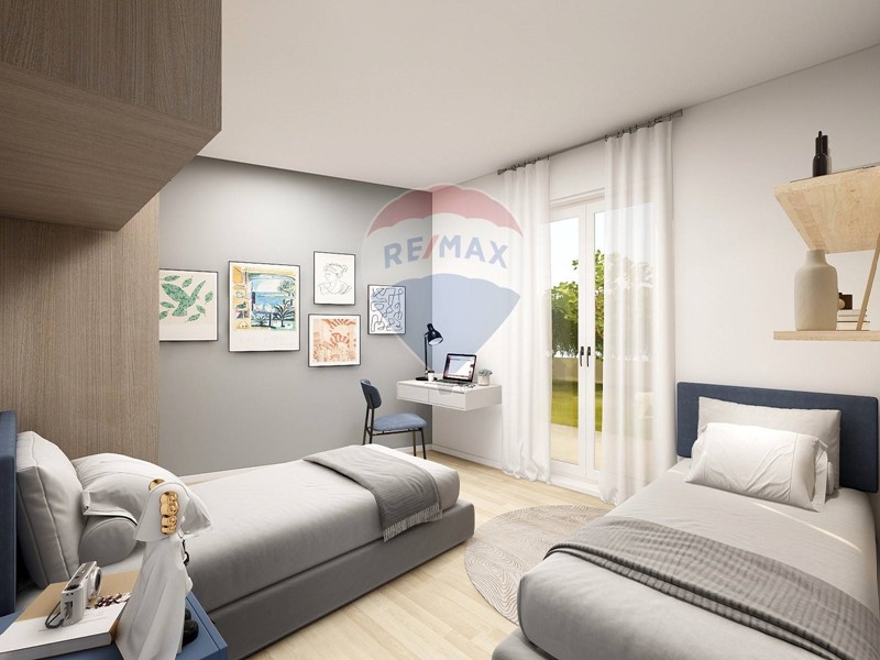 RE/MAX propone al piano terra della "RESIDENZA GIULIA" uno splendido appartamento così composto: area living con ampio e moderno soggiorno-pranzo, cucina a vista, disimpegno, camera matrimoniale, due camere singole e due bagni. L'area esterna include uno splendido porticato coperto, ideale per pranzare all'aperto, ed un giardino nel quale potersi rilassare e godere della tranquillità della zona.