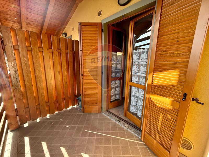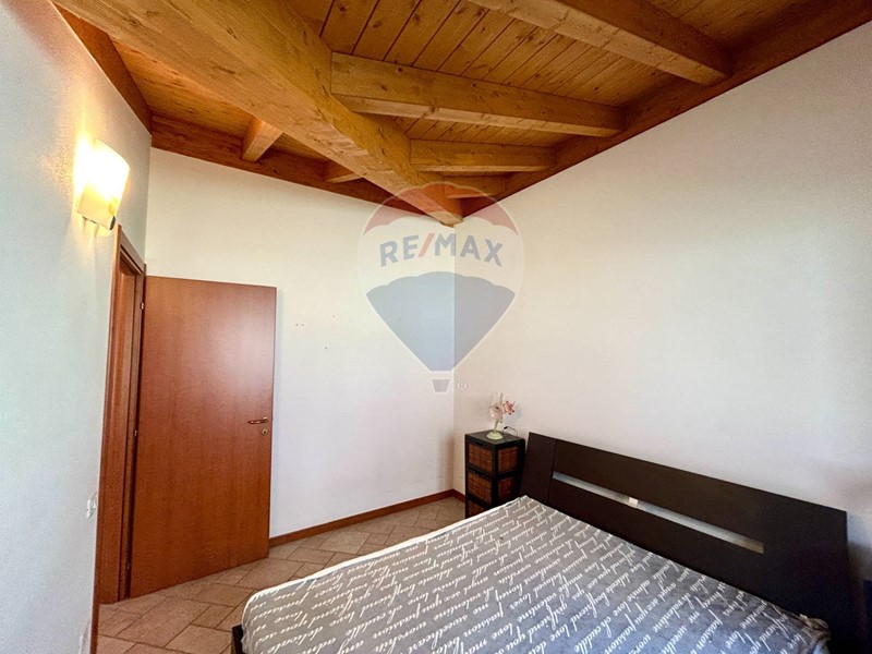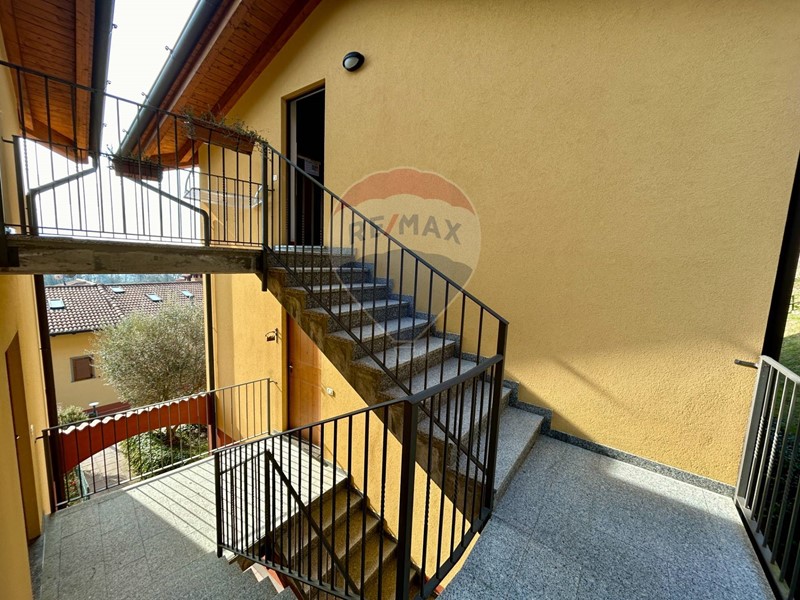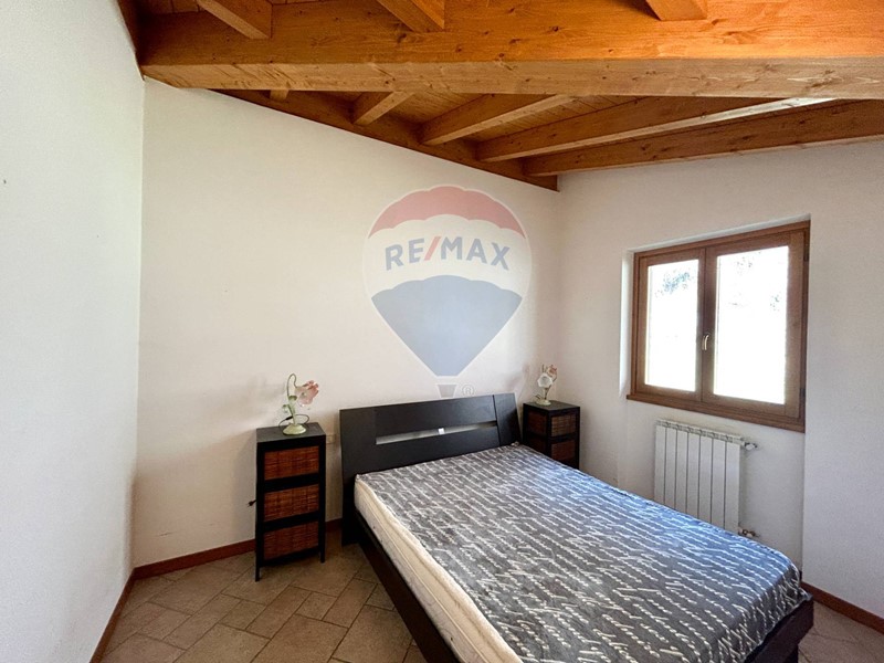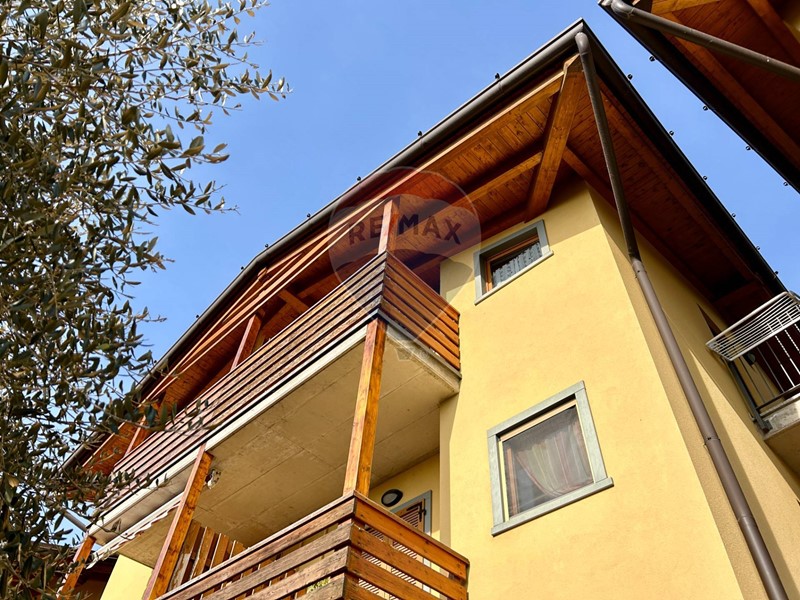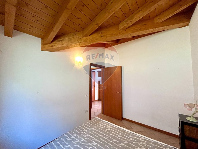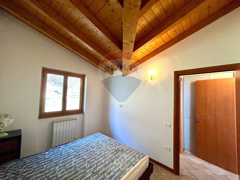 L'appartamento si trova al secondo ed ultimo piano, ha una superficie di 40 mq circa è già arredato e pronto per essere abitato fin da subito ed è composto da soggiorno con cucina a vista e caminetto, disimpegno, camera matrimoniale, bagno con doccia e ampio terrazzo con vista panoramica sulla natura circostante e sul lago. Le travi in legno a vista danno un tocco di calore e carattere all'ambiente.