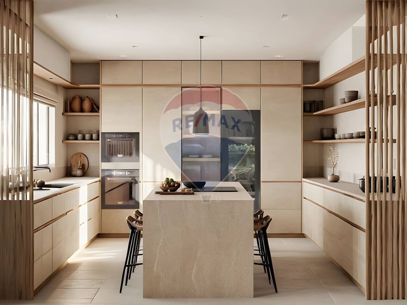 La cucina, spaziosa e moderna, è progettata per offrire massima funzionalità e si completa con una comoda dispensa. Il piano terra è inoltre dotato di un bagno di servizio, una pratica lavanderia, un locale tecnico e un accesso diretto allautorimessa.