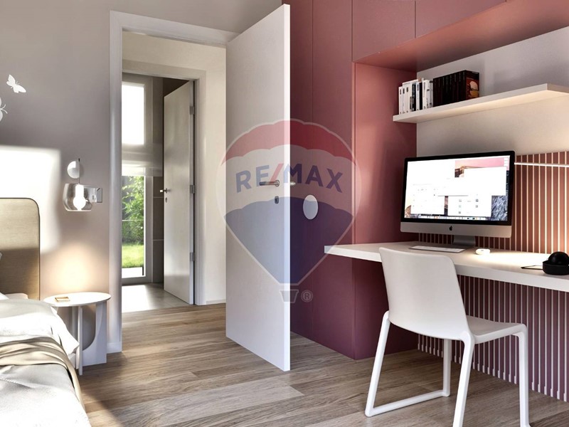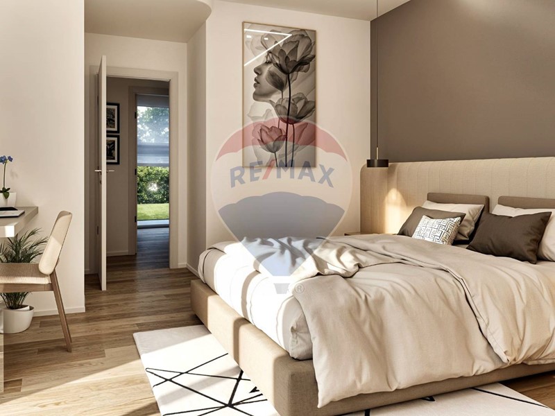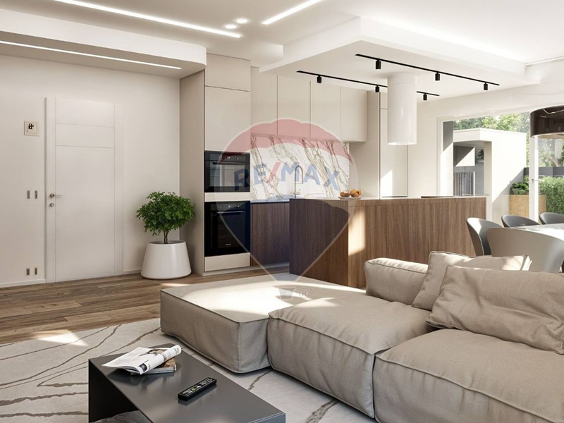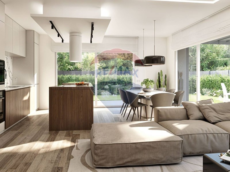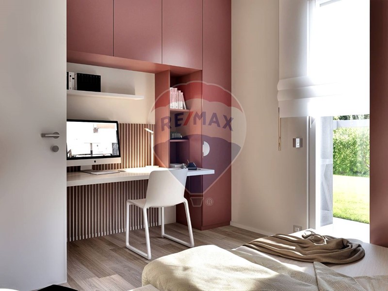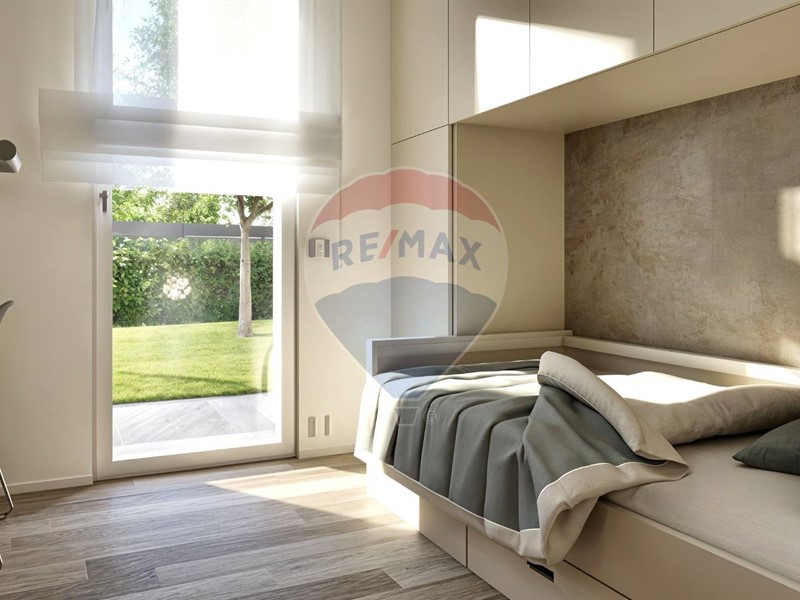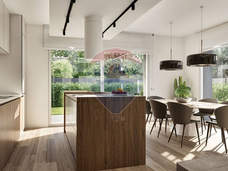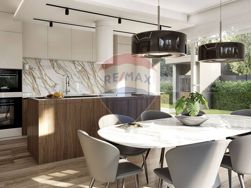 Lingresso indipendente da via Madre Teresa di Calcutta conduce a una casa funzionale e raffinata. La zona giorno open space è illuminata da grandi vetrate che si affacciano sul giardino, creando un dialogo fluido tra interno ed esterno.