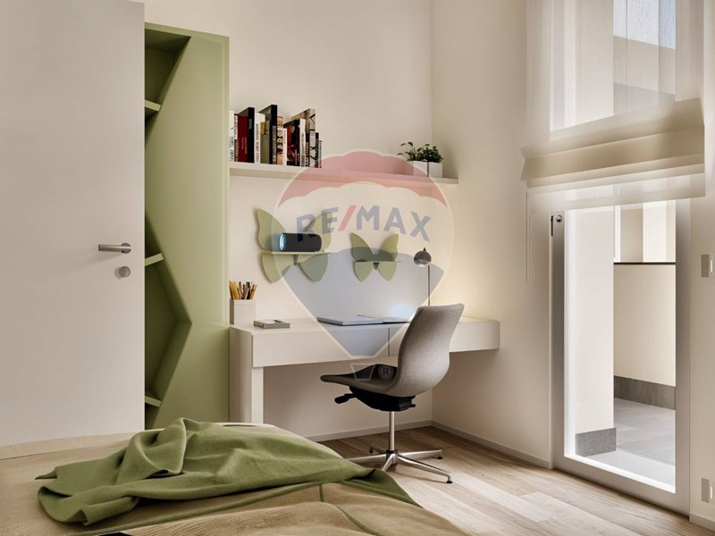 Una master room con cabina armadio finestrata e bagno privato en suite (entrambi finestrati), con accesso a una loggia coperta ad uso esclusivo