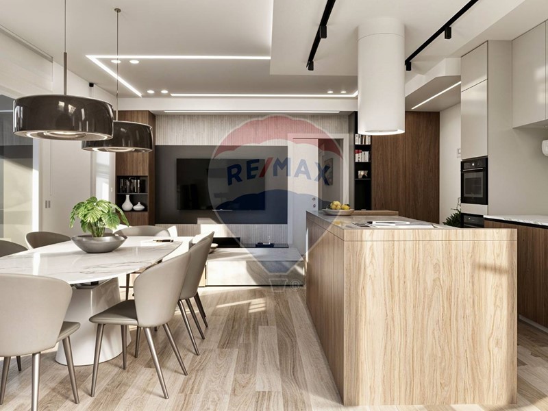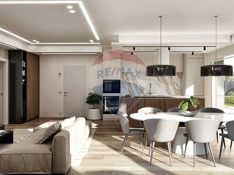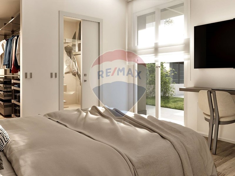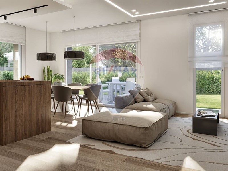 Lingresso indipendente da via Madre Teresa di Calcutta conduce a una casa funzionale e raffinata. La zona giorno open space è illuminata da grandi vetrate che si affacciano sul giardino, creando un dialogo fluido tra interno ed esterno.