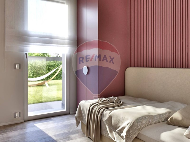 Lingresso indipendente da via Madre Teresa di Calcutta conduce a una casa funzionale e raffinata. La zona giorno open space è illuminata da grandi vetrate che si affacciano sul giardino, creando un dialogo fluido tra interno ed esterno.