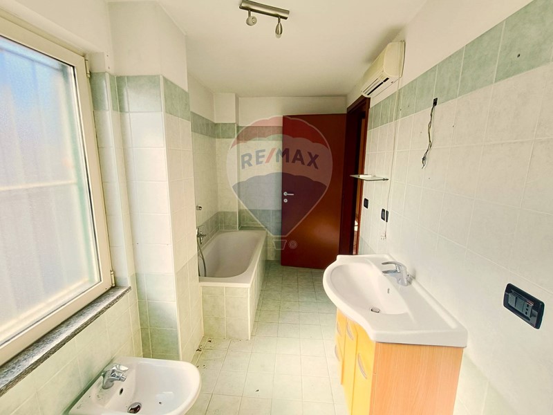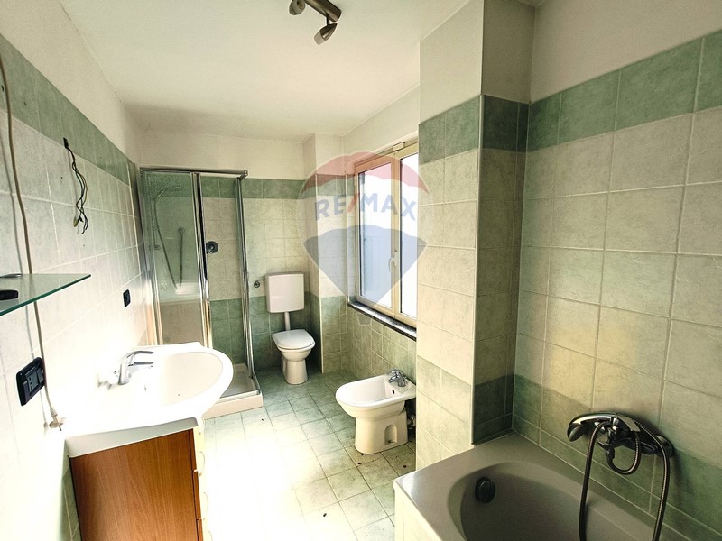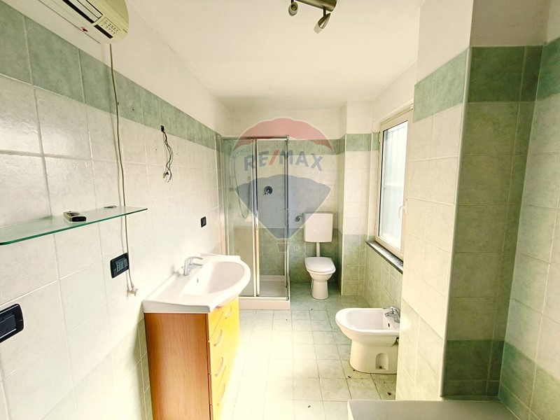 Il bagno, completo di sanitari, doccia e attacchi per la lavatrice, è anch'esso finestrato per una maggiore ventilazione e luminosità.