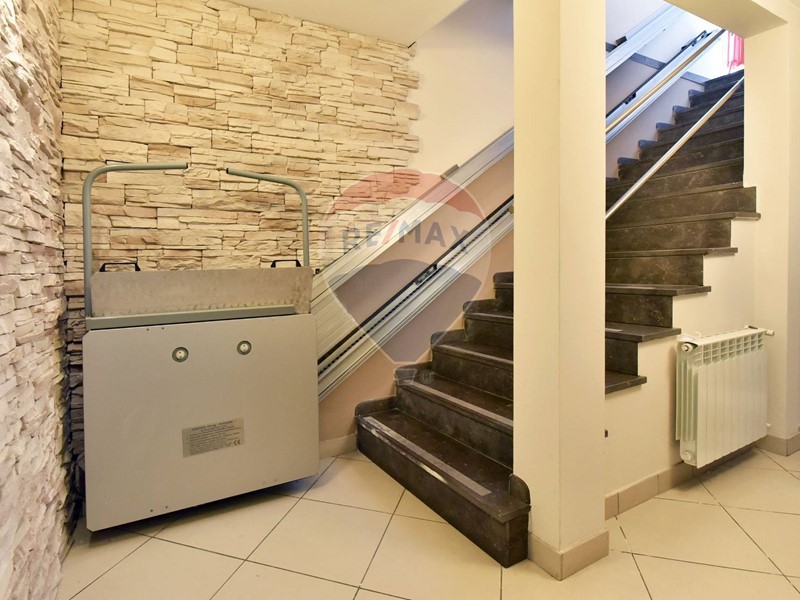 La soluzione posta al piano terreno è così composta: ampio locale per ricevimento clienti, cucina comunicante, attrezzata e dotata di canna fumaria e ripostiglio.