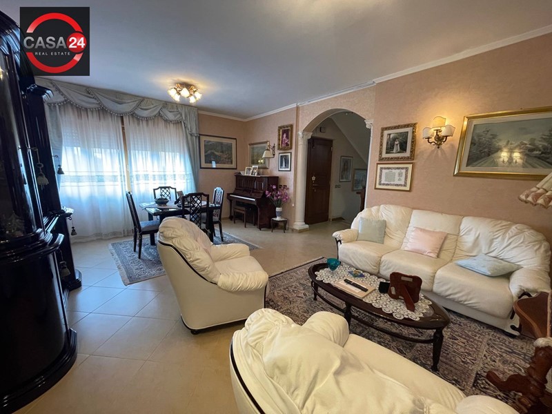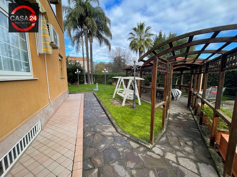 Piano rialzato, ingresso, salone cucina abitabile e zona pranzo, un bagno e balcone con accesso nel giardino retrostante; al piano superiore troviamo tre ampie camere da letto, un balcone, un terrazzo e un bagno, la scala interna ci porta all piano superiore dove troviamo un ampio open-space con bagno e balcone, con destinazione residenziale.