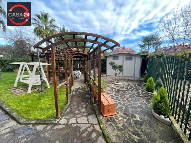 La proprietà si completa con un bel giardino disposto su tre lati con parte pavimentata nella parte anteriore e giardino nella parte laterale e posteriore dove c'è un bel gazebo 5x4 dove poter pranzare/cenare all'esterno nel periodo estivo.