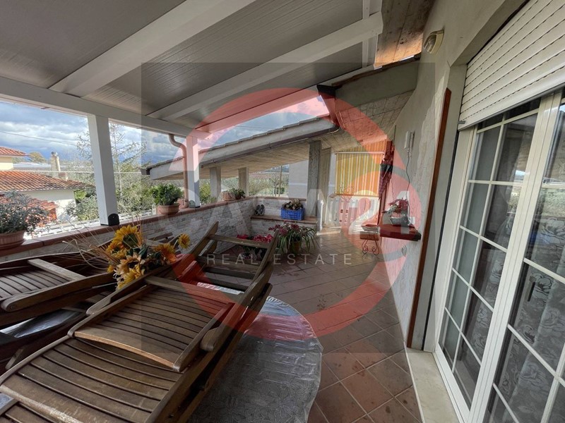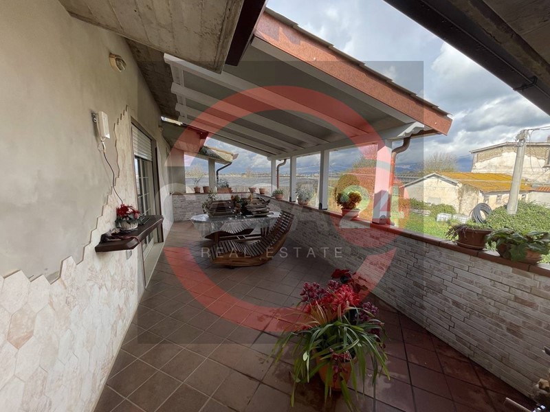 rifinito appartamento così composto: ingresso, salone con affaccio su ampio terrazzo coperto in lamellare, cucina, 3 camere da letto, due bagni entrambi con finestra.(infissi doppio vetro, stufa a pellets, radiatori a gas)