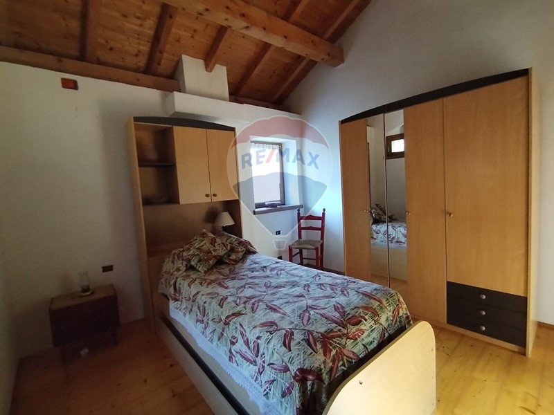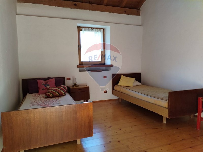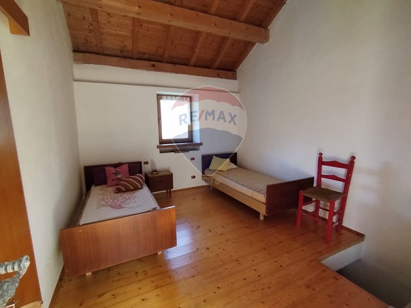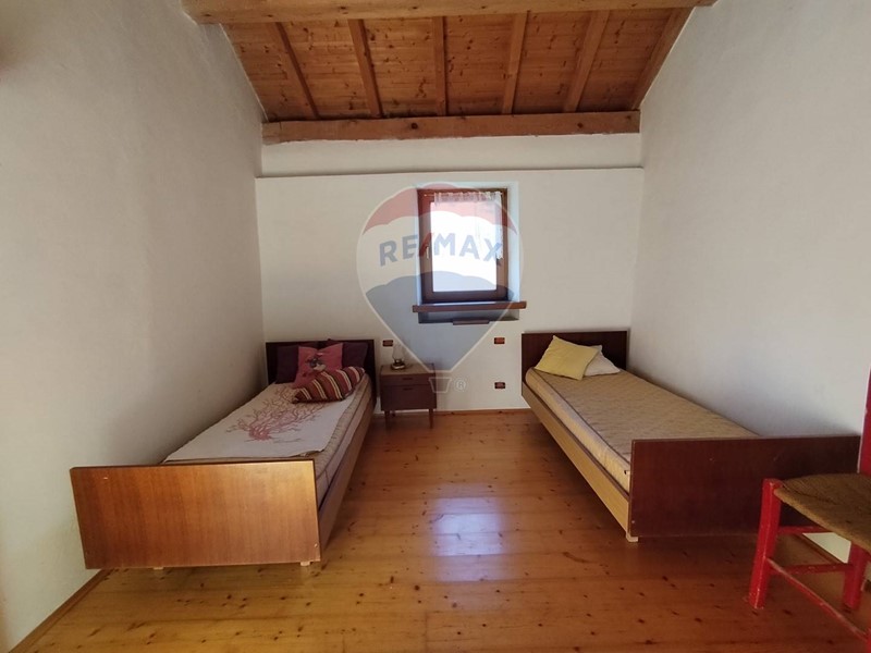 Al primo piano si trovano le due camere da letto, una singola e una matrimoniale con travi a vista.