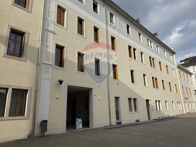 Il negozio è al piano terra, con entrata da una loggia di grande passaggio pedonale, e vicinissima alla Piazza dei Martiri, alle scuole e alla stazione cittadina.