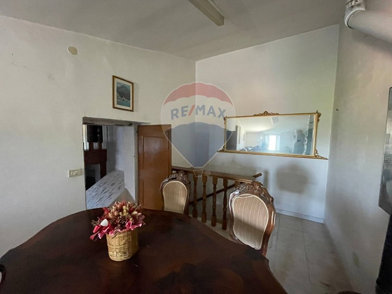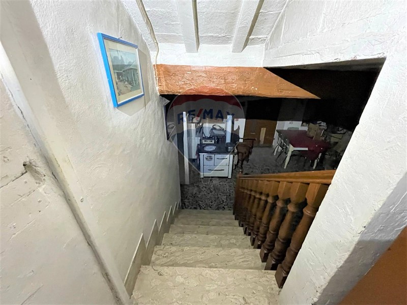 La proprietà ha un doppio ingresso sia dal piano terra nella cantina, molto fresca in estate, adibita a taverna e sala hobby, sia dal piano primo dove troviamo un ampio soggiorno cucina, due vani ed un bagno; Al piano secondo, reparto notte, troviamo 5 camere ed un altro bagno; con vista panoramica verso la vallata.