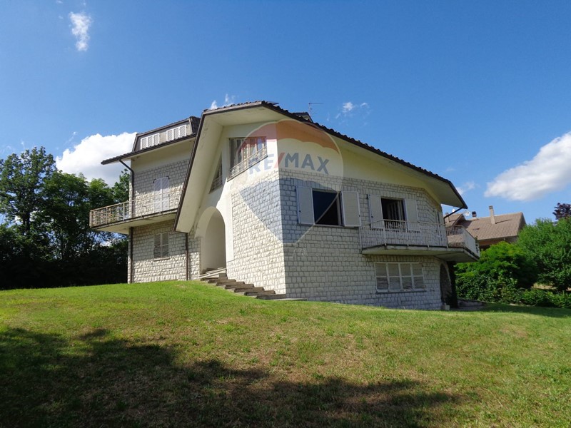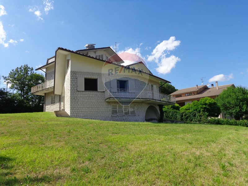 Al suo interno si trovano al piano terra un ampio ingresso, un cucinino con tinello e camino, bagno con antibagno, un ampio salone con balcone che permette di godere del paesaggio circostante, una camera da letto matrimoniale o studio; al piano primo un ballatoio, 4 camere da letto, 2 bagni e due balconi; al piano soffitta altri tre vani che potrebbero diventare ulteriori camere per ospiti; piano seminterrato un locale caldaia, una cucina ed un altro locale da utilizzare anche come sala hobby. Completa la proprietà un doppio box auto e di 4 posti auto scoperti.
