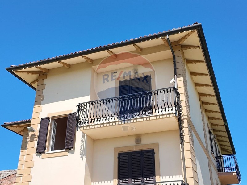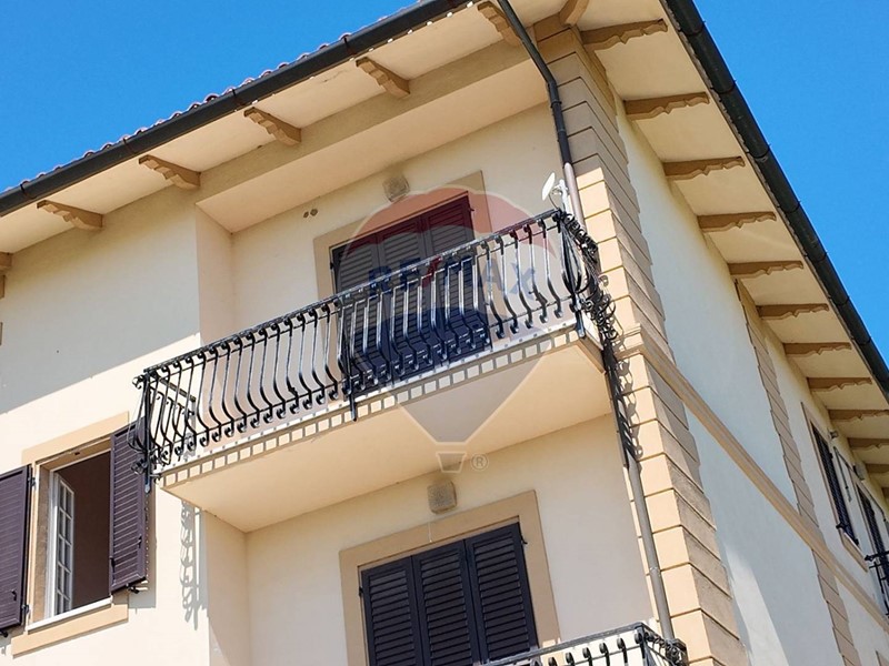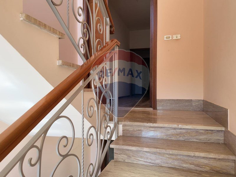 La casa, abbinata ad un lato, è pronta per essere abitata. Al piano terra si accede tramite un elegante ingresso, con scala padronale che conduce al primo piano ad un appartamento, composta da un ampio e luminoso salone con balcone, una cucina abitabile con balcone, tre camere e due bagni.