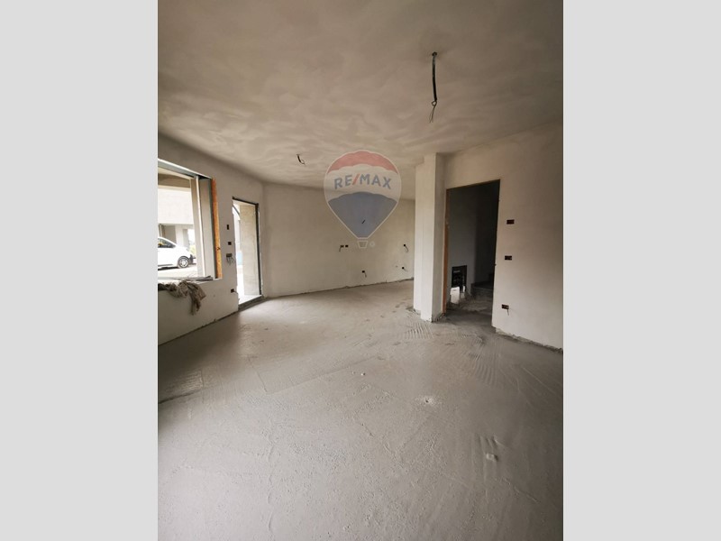 Internamente al piano terra troviamo un soggiorno di ampie metrature, cucina open space, un disimpegno, ed infine un bagno per un totale di 50mq