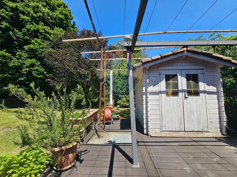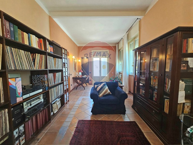Una strada privata ci accompagna nella proprietà. Immersa nel suo verde con circa 1500 mq di giardino la Villa si sviluppa su due livelli, offrendo ampi spazi per ogni esigenza. Al piano terra, accoglie gli ospiti una luminosa zona living, seguono un soggiorno, un'ampia e caratteristica cucina abitabile con bagno e accesso diretto al retro del giardino, oltre ad uno studio anch'esso di ampia metratura.