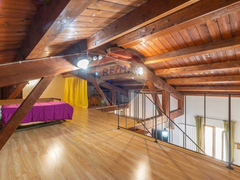 Subito si viene catturati da un notevole e raffinato soffitto in legno pregiato, e una caratteristica scala che conduce ad uno spazioso soppalco,