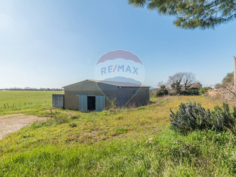 Completa la proprietà un fabbricato agricolo di ca. 250 mq. con fondamenta in cemento armato, pavimentazione interamente cementata con rete metallica per carichi pesanti, copertura in fibrocemento, porta carraia in ferro a doppia battuta.