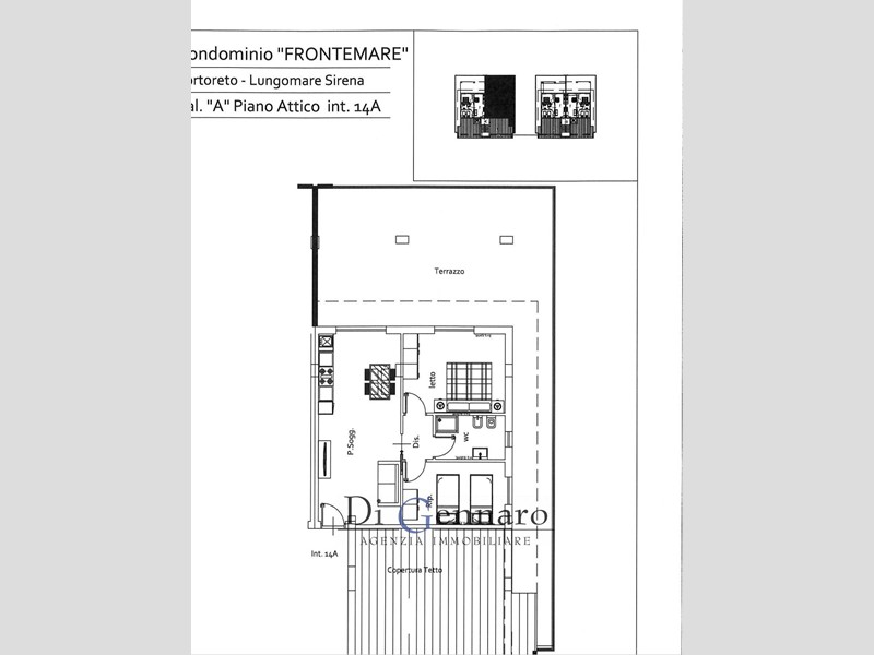 L'appartamento proposto nell'annuncio si trova al terzo ed ultimo piano ed al suo interno gli ambienti sono così distribuiti: ingresso su ampia zona giorno con cucina a vista, disimpegno, bagno finestrato con doccia e due camere da letto. Il punto forte dell'appartamento è sicuramente il grande terrazzo di oltre 70 mq esposto ad est, da cui poter ammirare una splendida vista sul mare e sul litorale, uno spazio prezioso e unico nel suo genere che conferisce grande valore all'appartamento stesso.
