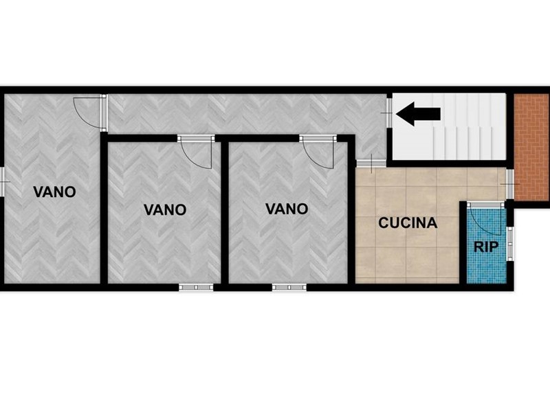L'immobile si sviluppa su una superficie di mq 85 ed è composto da ingresso, tre camere da letto, cucina e wc.