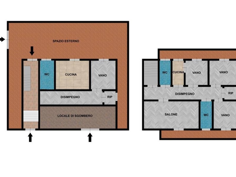 Completa la proprietà uno spazio esterno con ingresso per le auto e un locale di sgombero di mq 57.