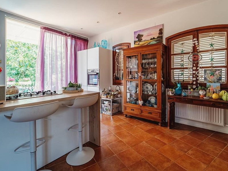 Immersa su un ampio lotto di terreno, gode di posti auto ed è circondata da un incantevole giardino, arricchito da Cycas, palme della macchia mediterranea e alberi da frutto.