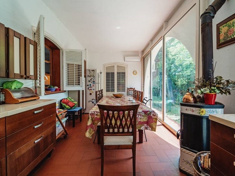 dalla presenza di vetrate panoramiche che consentono alla luce naturale di inondare gli interni della proprietà, creando un'atmosfera luminosa e accogliente, e di godere della vista del rigoglioso giardino.