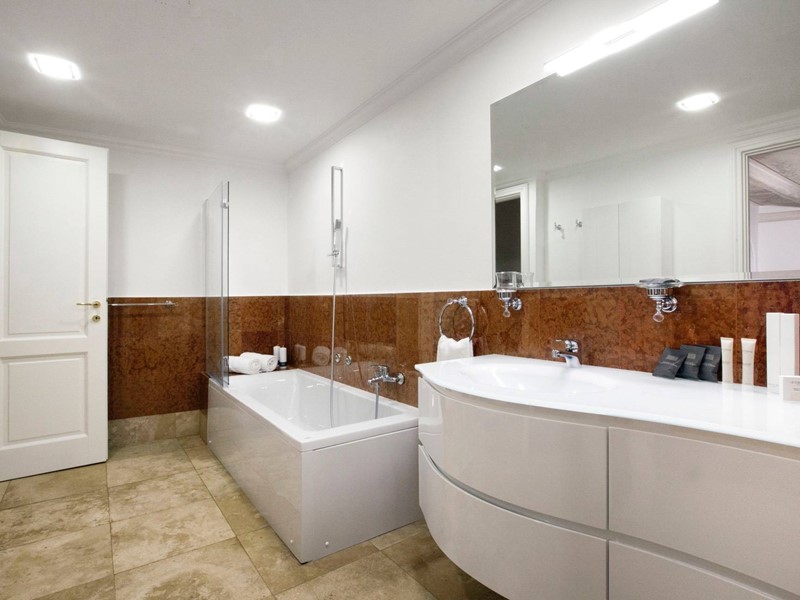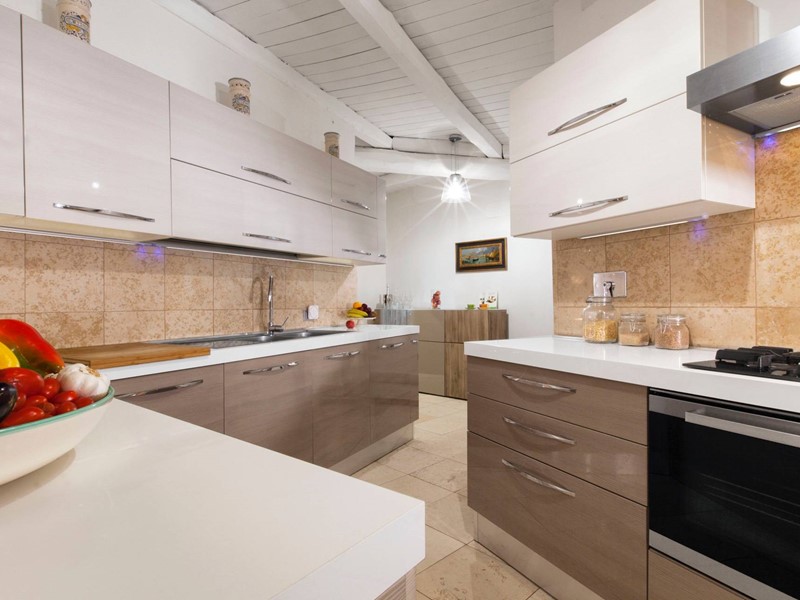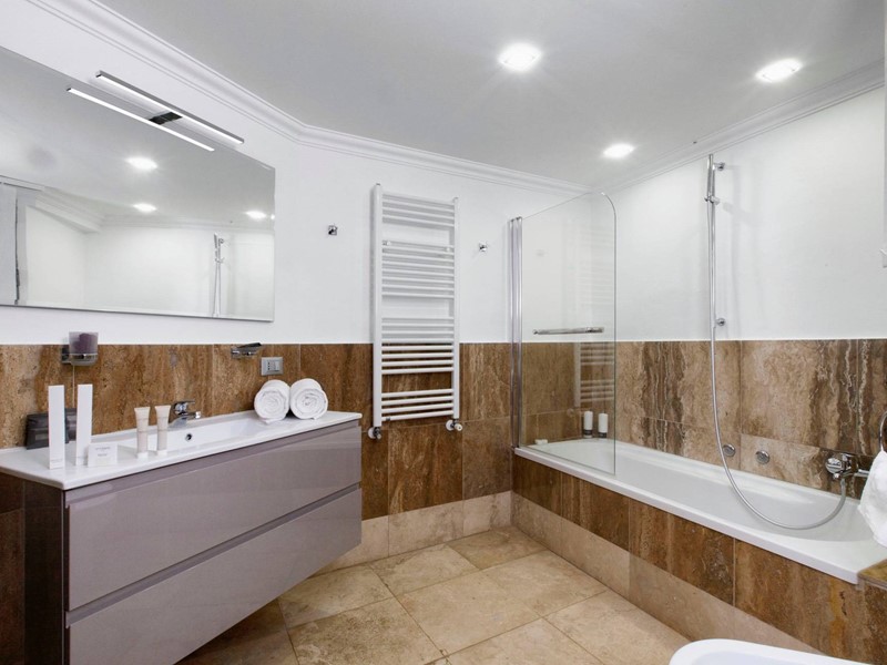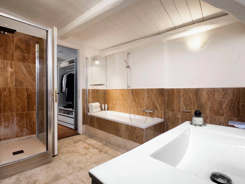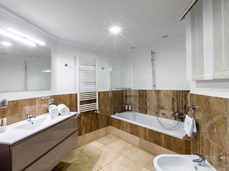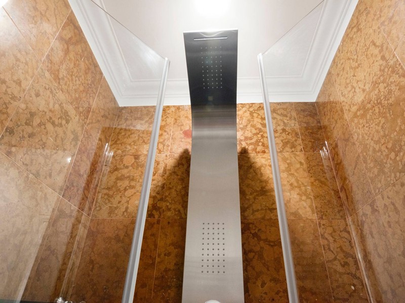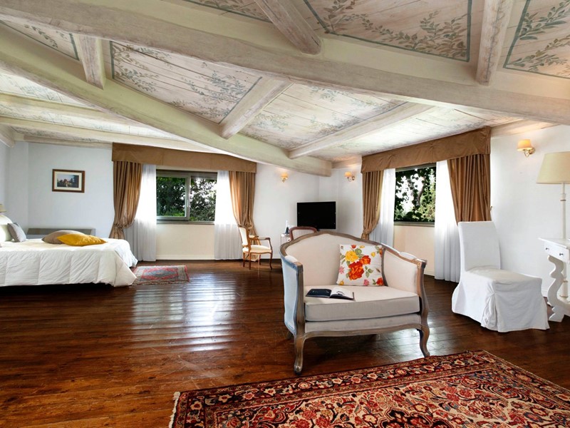Nel piano superiore, collegato agli altri piani con una comoda scala e un ascensore, si aprono le tre camere da letto padronali, di ampia metratura, tutte con un servizio en suite di circa 10 mq. Tutte le camere hanno armadi a muro e spazi esterni/ terrazzi.