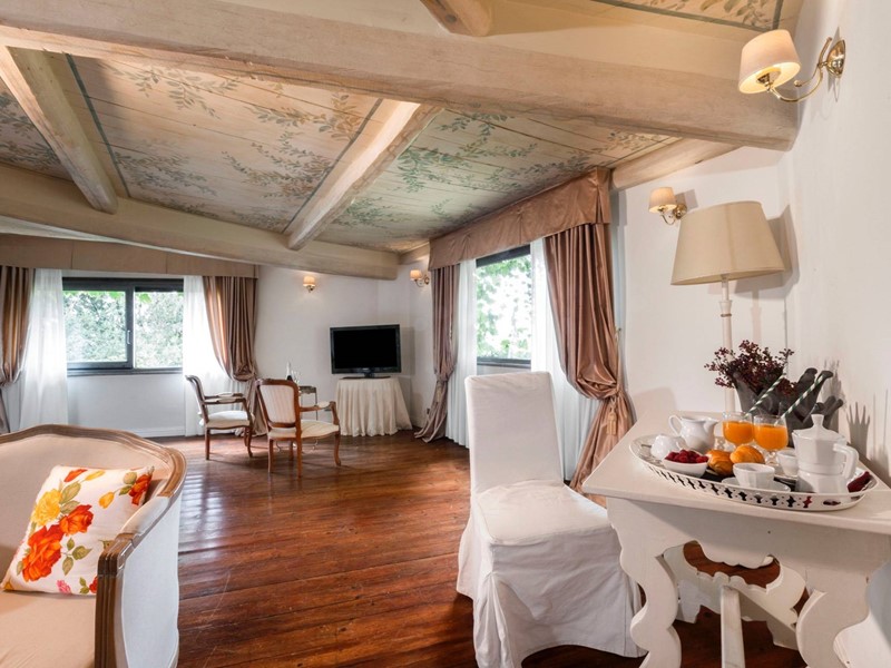 Percorsi pochi passi, passando accanto alle meravigliose fontane in pietra e salendo pochi gradini, si trova l'ingresso della villa. Al piano terra ai visitatori si apre un grande salone con camino secolare, soffitti dipinti, una sala da pranzo, una grande cucina, un servizio ospiti e una grande zona lavanderia.