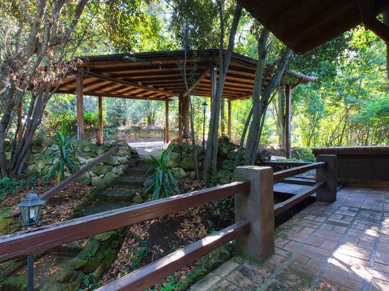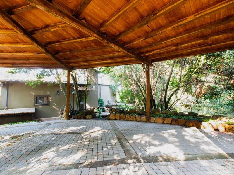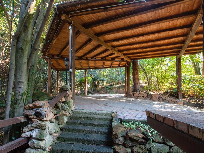 Ubicata in contesto esclusivo, avvolta dalla vegetazione del suggestivo parco condominiale con entrata privata, la villa ha 3 ingressi indipendenti e si disloca su 3 livelli.