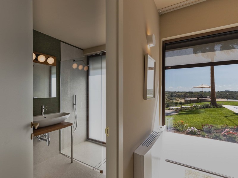 Al piano terra, oltre ad un comodo bagno di servizio, troverete una suite composta da un primo ambiente con divano letto matrimoniale e TV e, adiacente, un secondo ambiente con camera da letto matrimoniale e bagno privato completo di doccia. La seconda grande camera, con letto queen size, angolo scrivania e bagno privato con doccia, ha ampie finestre che permettono alla luce naturale di filtrare regalando un'illuminazione naturale eccezionale. Tutte le vetrate di ALTAMIRA sono state studiate dall'architetto, per offrire scorci di incontaminata natura siciliana, rendendo la villa un rifugio di comfort e raffinatezza dove i nostri ospiti possono godere di momenti di relax e intimità.