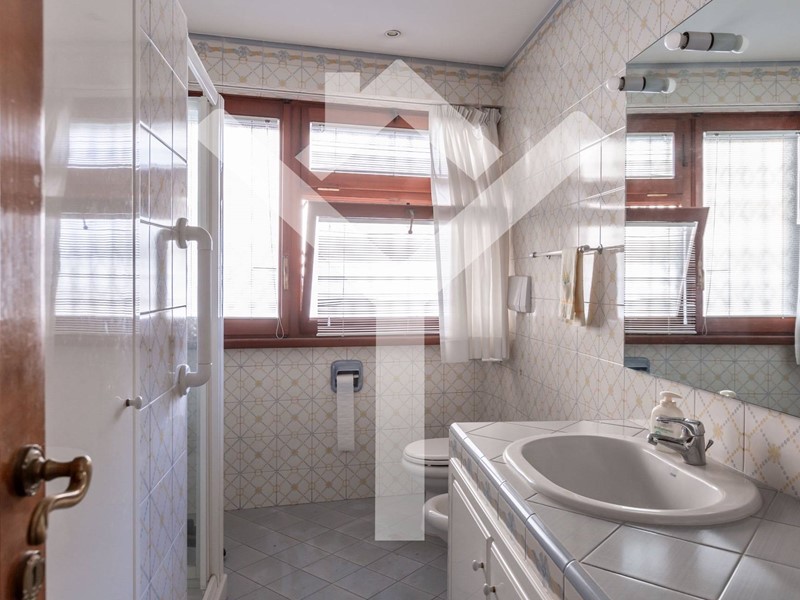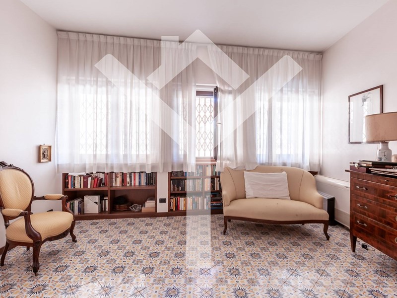 Al piano inferiore/ piano terra, collegato a quello superiore con una comoda scala, si trova invece la zona giorno, composta da una spaziosa camera da pranzo, una cucina abitabile con tinello, con uscite sul giardino privato, una camera da letto, un servizio e una cameretta di servizio. Tutte le camere sono ampie e luminose, alcune dotate di armadi a muro e hanno grandi finestre.