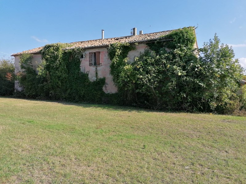155.000. San Giorgio di Pesaro, caratteristico borgo medioevale, ubicato sulle splendide colline marchigiane comprese tra la valle del Metauro e del Cesano vendiamo tipica casa colonica immersa nel verde, ma a due passi dalla strada principale. L'immobile, completamente da ristrutturare, si sviluppa su 2 livelli, per un totale di circa di 270 mq. L'intera proprietà comprende 3 capanni condonati e il tutto si sviluppa su un lotto di terreno pianeggiante di circa 2300 mq. Rif. C/284