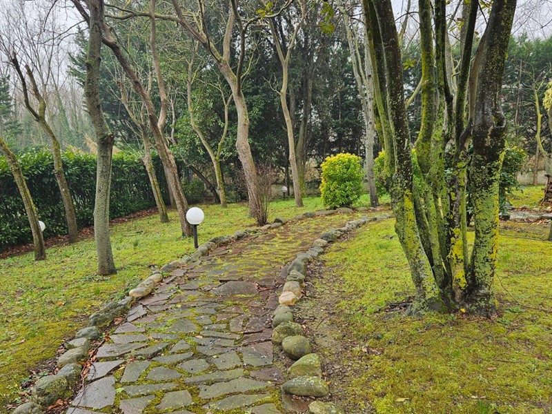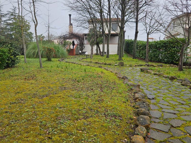380.000. VILLA CON PARCO. Lucrezia di Cartoceto, in tranquilla posizione strategica, poco distante dal centro cittadino e da tutti i servizi, vendiamo esclusiva VILLETTA INDIPENDENTE completamente immersa in un'oasi di verde. L'immobile, luminosissimo, è in ottime condizioni strutturali, ha ampi e comodi spazi e si compone di: ingresso immerso dalla luce grazie ad un'ampia vetrata, ampio salone con camino con grande porta-finestra che ha accesso diretto allo spazioso terrazzo vivibile con vista parco, cucina abitabile, zona pranzo, camera matrimoniale con cabina armadio, studio, e bagno finestrato con vasca al piano terra; disimpegno, 2 camere matrimoniali, bagno finestrato al 1°piano; garage triplo con bagno completo e lavanderia con attacchi lavatrice e acqua, zona stireria e armadi. Completa la proprietà un incantevole parco con un romantico gazebo, luogo affascinante e suggestivo curato ed abbellito da piante ornamentali, siepi e vari alberi, attraversato da un ordinato percorso lastricato illuminato da lampioncini. Pozzo per irrigazione. Questa soluzione abitativa rappresenta una realtà magica ed avvolgente, una location ideale lontana dal traffico cittadino ma a poco distante dai servizi che offre un centro abitato. Zanzariere ed inferriate ovunque. Finestre nuove in PVC. Sistema d'allarme. Sistema di aria condizionata. Riscaldamento a gasolio. Rif.: C/340