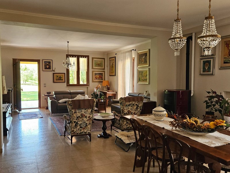 Completa la proprietà un grande e curato giardino completo di irrigazione automatica, area giochi abbellito da piante ornamentali, alberi da frutto e numerosi ulivi all'interno di un lotto di circa 1 ettaro. Questa soluzione abitativa rappresenta una realtà magica ed avvolgente, una location ideale lontana dal traffico cittadino ma poco distante dai servizi che offre un centro abitato. OTTIMO ACQUISTO PER UNA FAMIGLIA IN CRESCITA O PER CHI DESIDERA INVESTIRE IN UNA STRUTTURA RICETTIVA. Sistema di allarme perimetrale e volumetrico. Pozzo per irrigazione. Allarme nell'appartamento al piano terra. Predisposizione per trifase. Riscaldamento autonomo a Gpl e a legna. Classe energetica in fase di realizzo. Rif.: C/346