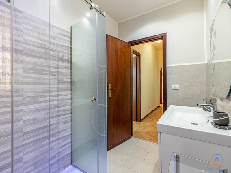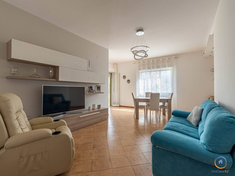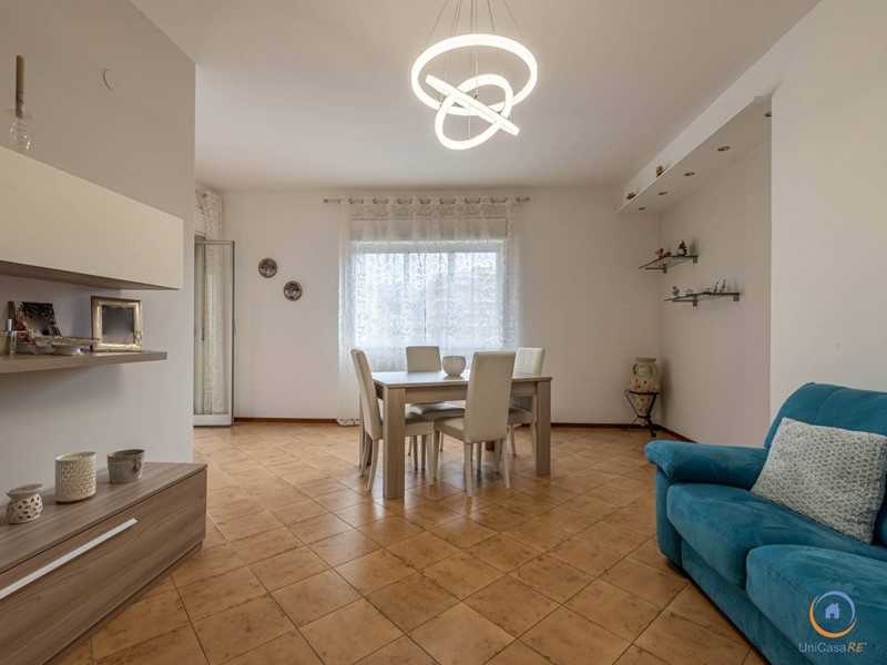 In contesto residenziale, stabile elegante degli anni ' 80 di 5 piani fuori terra servito da ascensore. L'appartamento posto al primo piano rialzato gode di due comodi terrazzini ed è composto da: ingresso, corridoio, due camere da letto, doppio soggiorno luminoso, cucina abitabile con annessa lavanderia, WC con doccia e lavanderia con servizio. L'immobile si presenta in ottimo stato, con pavimentazione in cotto e ceramica, infissi in alluminio e vetrocamera, porte in legno e la porta d'ingresso blindata. Completa la proprietà un posto auto in area condominiale.